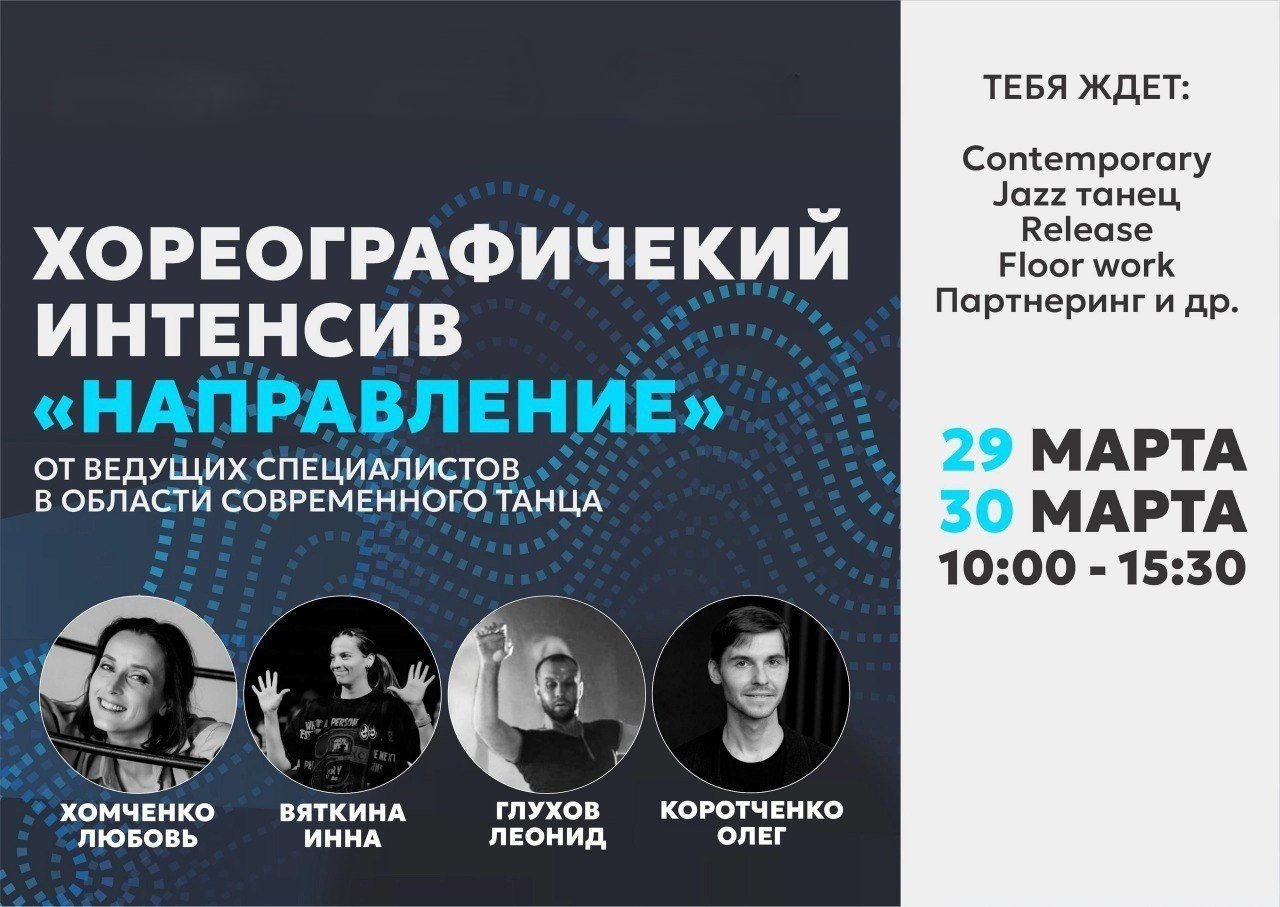 Танцевальная лаборатория «Точка роста» открывает свои двери к возможностям развития и обучения! Двухдневный хореографический интенсив «Направление», который пройдёт с 29-30 марта во Дворце Культуры «Прогресс».