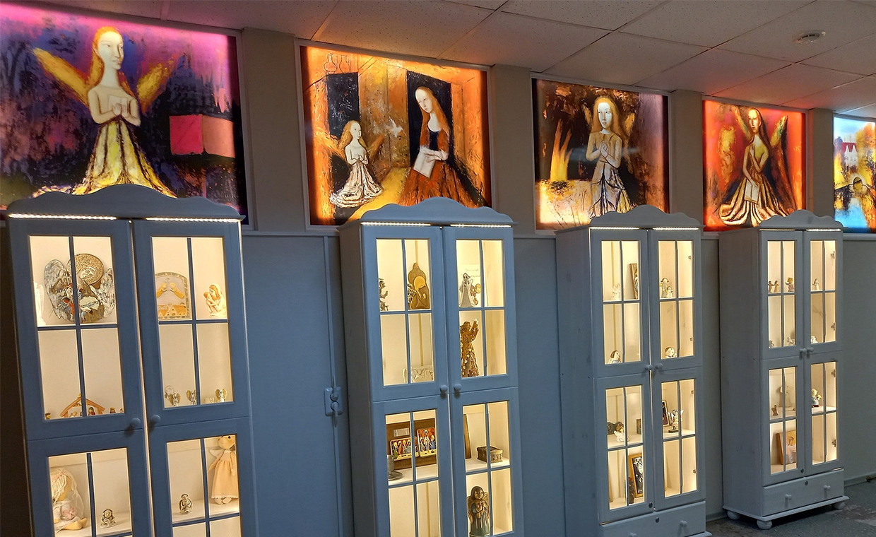 Коллекция ангелов — в разнообразных жанрах, техниках, формах. Каждый ангел — это особая история и настроение. Петербургские бронзовые ангелы Романа Шустрова; музыкальные ангелы (изготовленные в частной мастерской Николая Абрамовича, Вербилики); каменная реплика «Ангел, пробуждающий волхвов» — Западная Европа XII в. (изготовлено в Скульптурной мастерской ХНУМ); картина «Ангел больших успехов» Павла Гаврилова. А также — ангелы из Перу и многое другое...