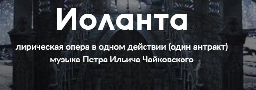 «Я напишу такую оперу, что все будут плакать» — говорил П.И. Чайковский. И ему это удалось, вот только слёзы появляются от радости и счастья за героев. Слепая дочь короля Рене, принцесса Иоланта, потеряла зрение еще в глубоком детстве. Любовь отца была настолько безграничной, что король запретил всем говорить о возможности видеть — Иоланта думала, что ничем не отличается от других. Ее воспитывали в доброте и заботе, принцесса выросла чуткой и нежной, не замечая вечной тьмы вокруг. Но все изменилось с внезапным появлением рыцаря Готфрида Водемона — он рассказал девушке, что глаза нужны не только для того, чтобы плакать... Король Рене отчаянно заявляет, что казнит юношу, если Иоланта не прозреет. Но трепетное чувство в сердце хрупкой девушки заставляет поверить Иоланту, что когда-нибудь она увидит лицо прекрасного рыцаря.