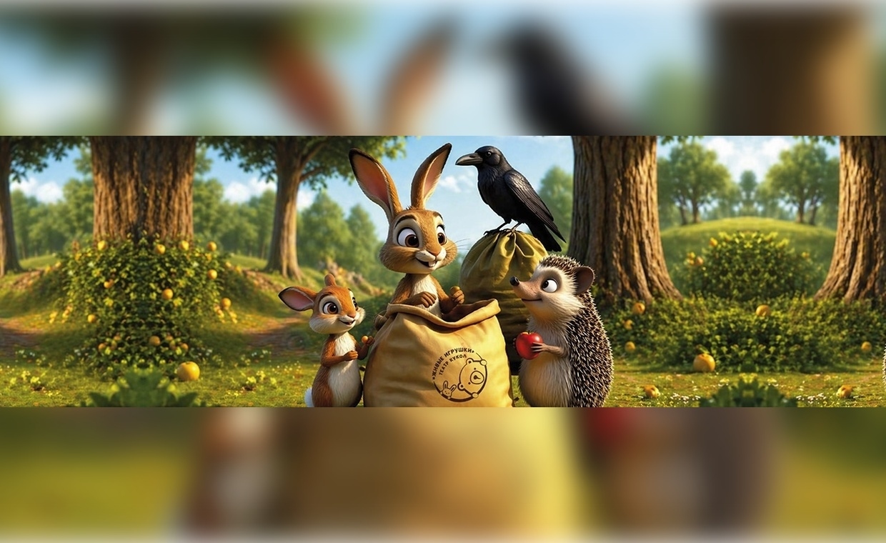 Заячья семья голодает. Самый старший зайчонок отправляется в лес в поисках еды, взяв с собой мешок. На обратном пути он угощает всех лесных жителей. Встретив волка, зайчонок пугается и бежит прочь, потеряв свой мешок. Мышонок и ёжик находят мешок в лесу и наполняют гостинцами. А потом, дружной компанией, идут в гости к зайцам.