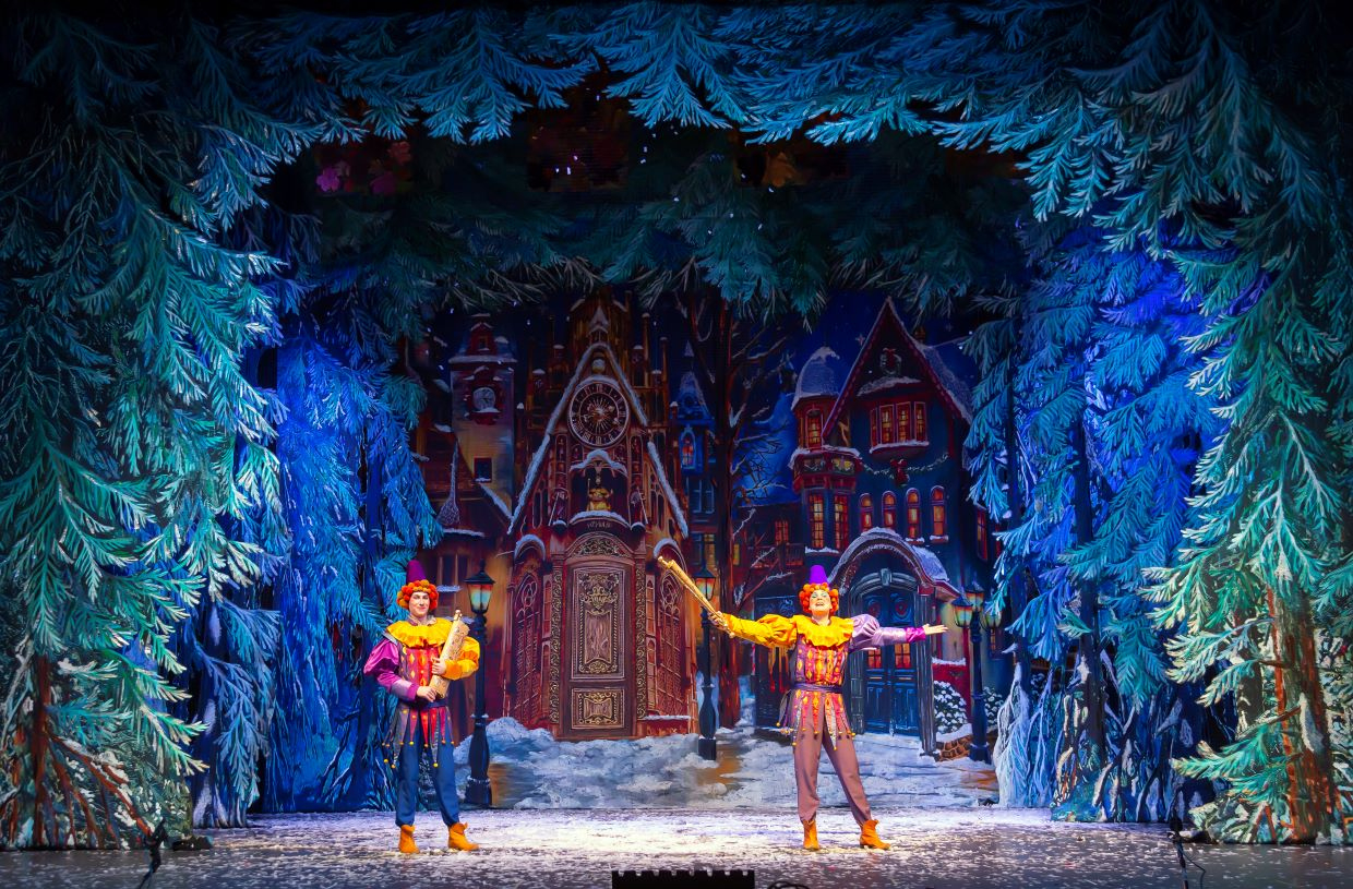 Полный волшебного очарования заснеженный лес возникает перед зрителями, как только откроется занавес.