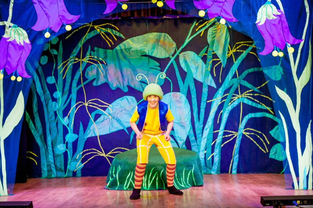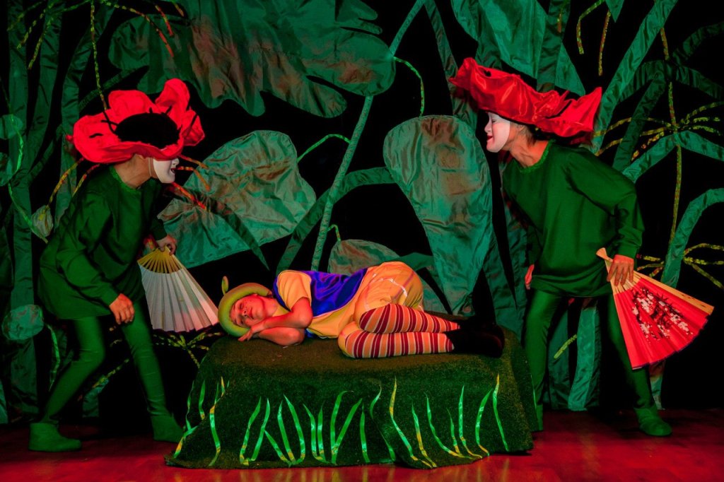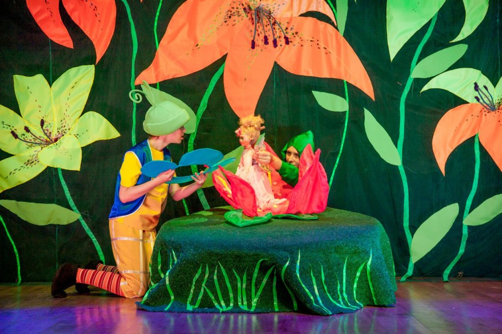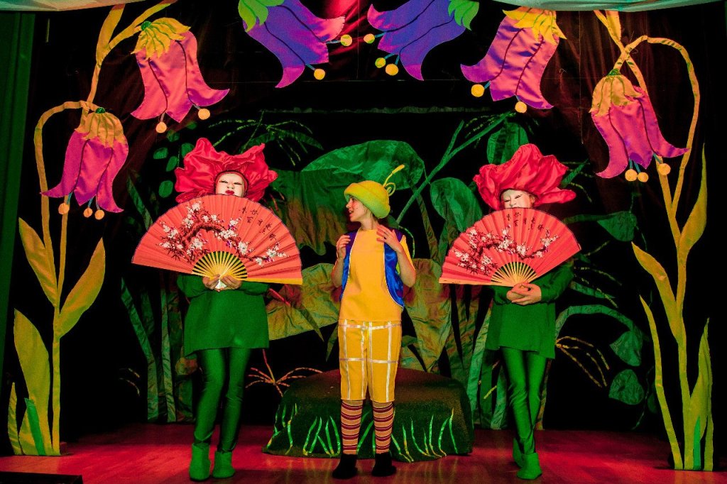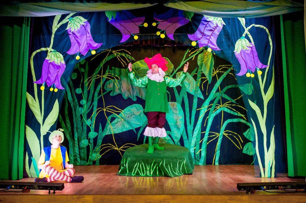 На сцене загораются цветы и растения необычайной красоты.Оживают сказочные герои .